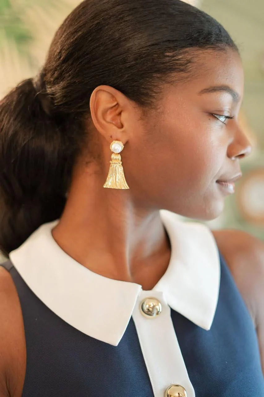 Experience elegance with a touch of playful charm with the ANNIE TASSEL PEARL STUD earrings by Lisi Lerch. These 18k gold-plated tassel earrings are the epitome of style, capturing the essence of an endless summer. Every day becomes a vacation with these stunning accessories that perfectly embody the originality and creativity of Lisi Lerch's designs. Dangle them with pride, and let your style shine!