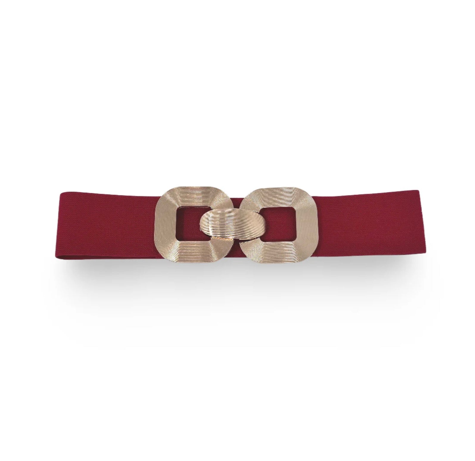 Designed with elasticized materials and a sleek metal buckle, this belt offers a comfortable, adaptable fit for all waist sizes. Its modern, minimalist aesthetic makes it a versatile accessory perfect for everyday wear. Ideal for boutiques seeking stylish and functional pieces. Measurements: 28'' L x 2'' W (stretch)